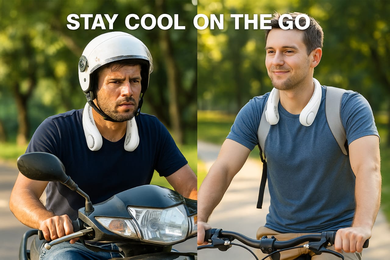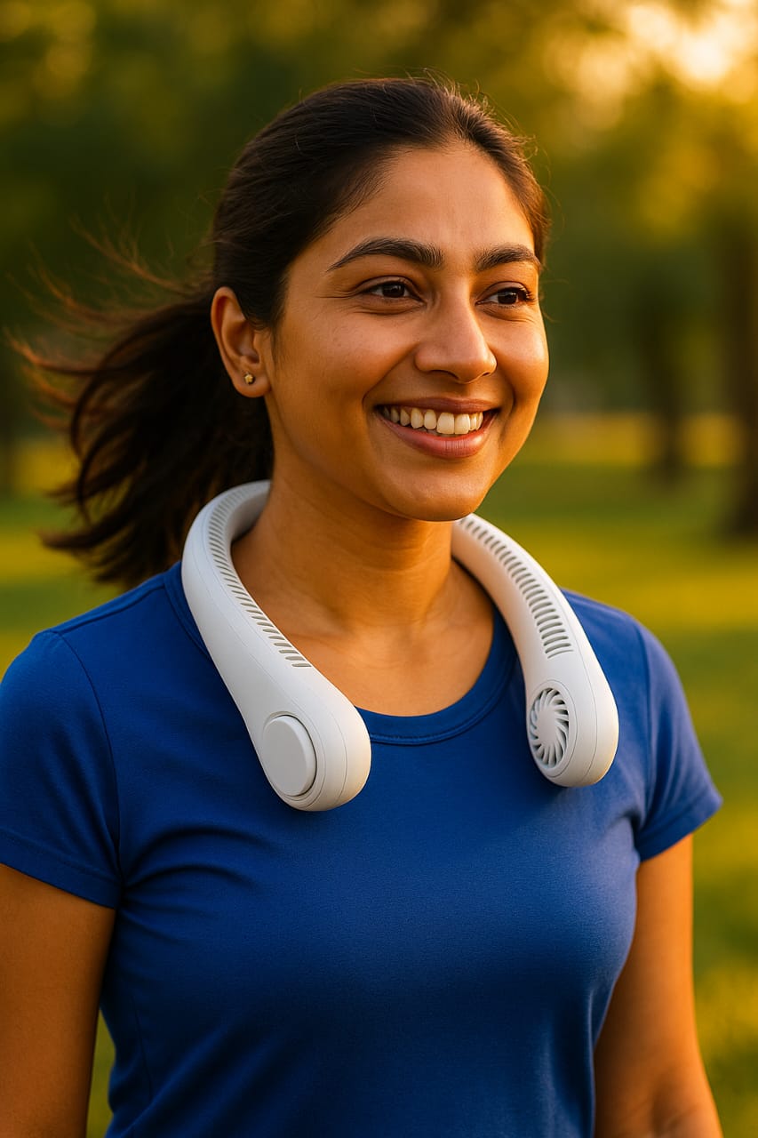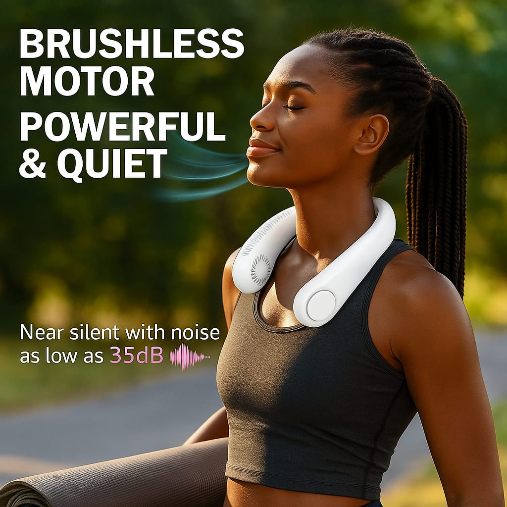 🌀 Bladeless 360° Cooling – Enjoy a whisper-quiet, even breeze all around your neck. No blades = no worries. Safe for hair, kids & pets.