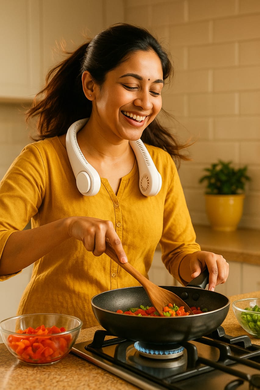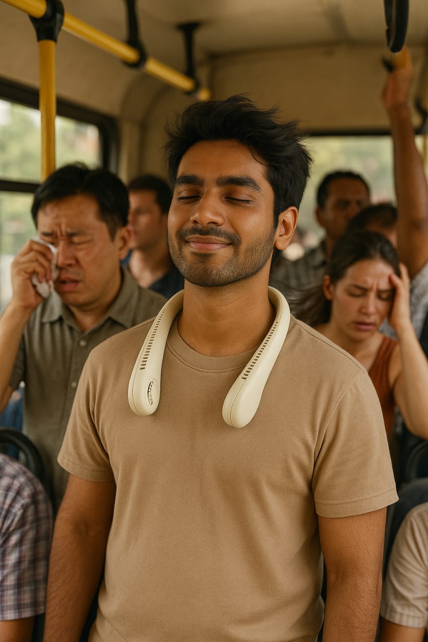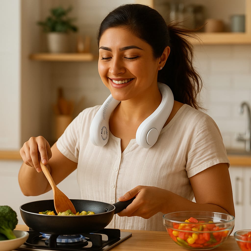 🌀 Bladeless 360° Cooling – Enjoy a whisper-quiet, even breeze all around your neck. No blades = no worries. Safe for hair, kids & pets.
